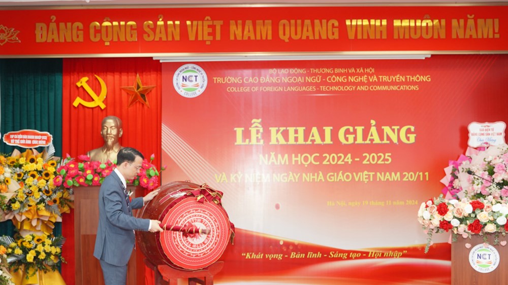 Sáng ngày 19/11/2024, Trường Cao đẳng Ngoại ngữ – Công nghệ và Truyền thông (NCT College) đã long trọng tổ chức Lễ Khai giảng năm học 2024 – 2025 kết hợp Kỷ niệm Ngày Nhà giáo Việt Nam 20/11 trong không khí trang trọng, ấm áp và đầy hứng khởi.