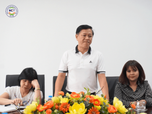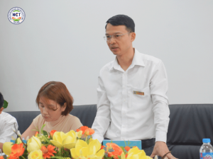 Mở đầu buổi làm việc, ThS. NCS Nguyễn Đức Tiến – Hiệu trưởng Nhà trường đã gửi lời chào mừng và giới thiệu tổng quan về định hướng đào tạo của NCT College. Thầy nhấn mạnh rằng Nhà trường hiện tập trung vào ba lĩnh vực giáo dục mũi nhọn: ngoại ngữ – công nghệ – truyền thông, đồng thời chú trọng phát triển kỹ năng nghề nghiệp, kỹ năng mềm và phẩm chất người học. Nhờ đó, sinh viên luôn được trang bị toàn diện để đáp ứng nhu cầu của thị trường lao động hiện đại.